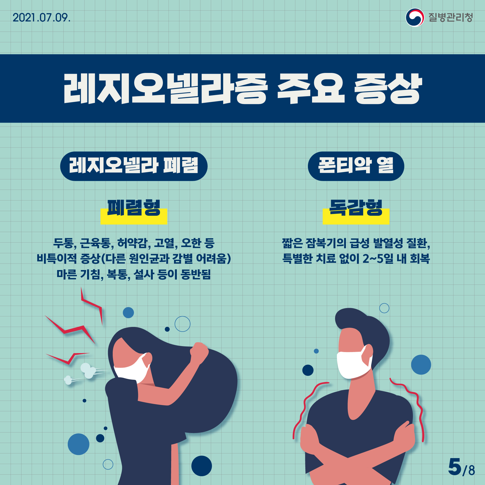 레지오넬라증은 크게 폐렴형/독감형 으로 나뉩니다.