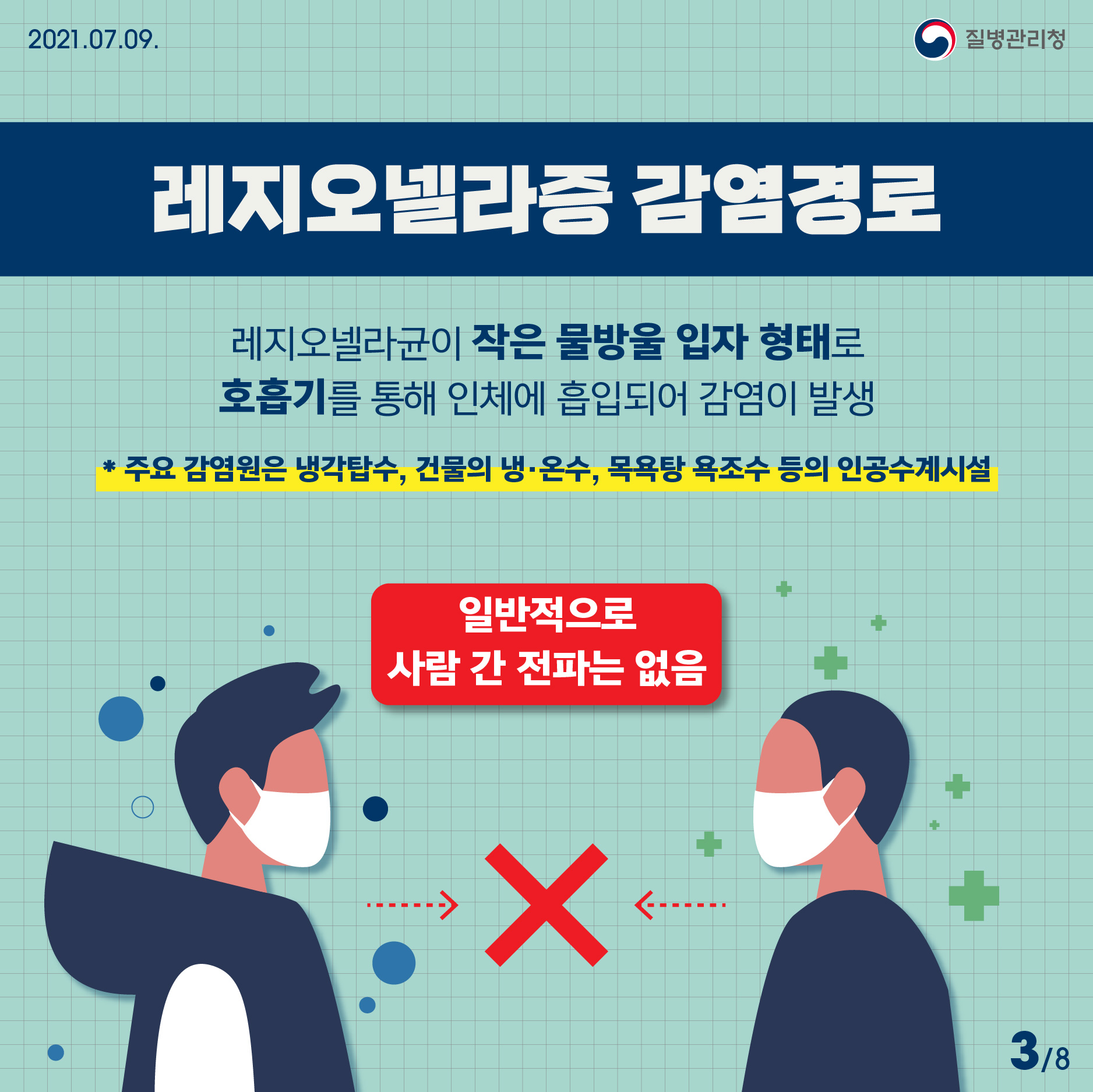 레지오넬라균은 사람 간에는 전파가 되지 않습니다.